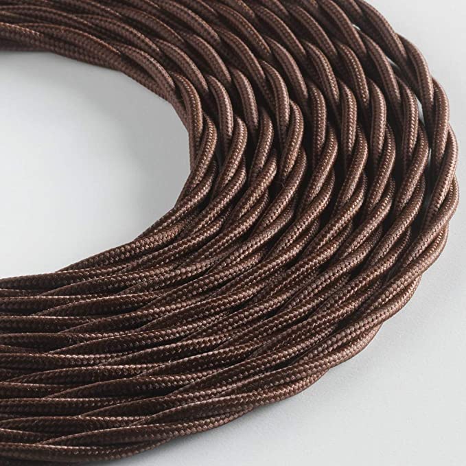 Cavo tessile marrone 3×1 mm in matassa da 50 metri, ideale per la realizzazione e il restauro di impianti di illuminazione, lampade vintage, lampadari e progetti fai-da-te.