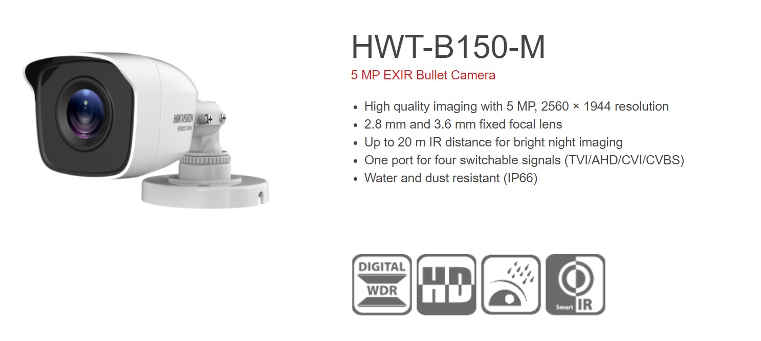 - La telecamera HWT-B150-M è la scelta perfetta per chi cerca un sistema di sorveglianza di alta qualità, con prestazioni eccellenti e una tecnologia all’avanguardia. Ideale per l’uso in ambienti residenziali, aziendali e industriali, questo modello offre una visione chiara e dettagliata per garantire la massima sicurezza.