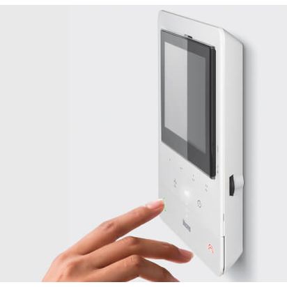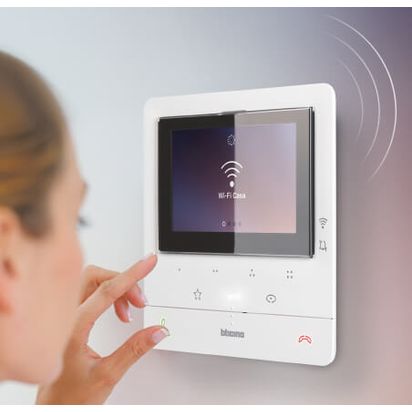 - Comandi intuitivi: 2 tasti fisici per rispondere o chiudere le chiamate e 3 tasti a sfioramento per attivare elettroserratura, luci scale e posto esterno/ciclamento.